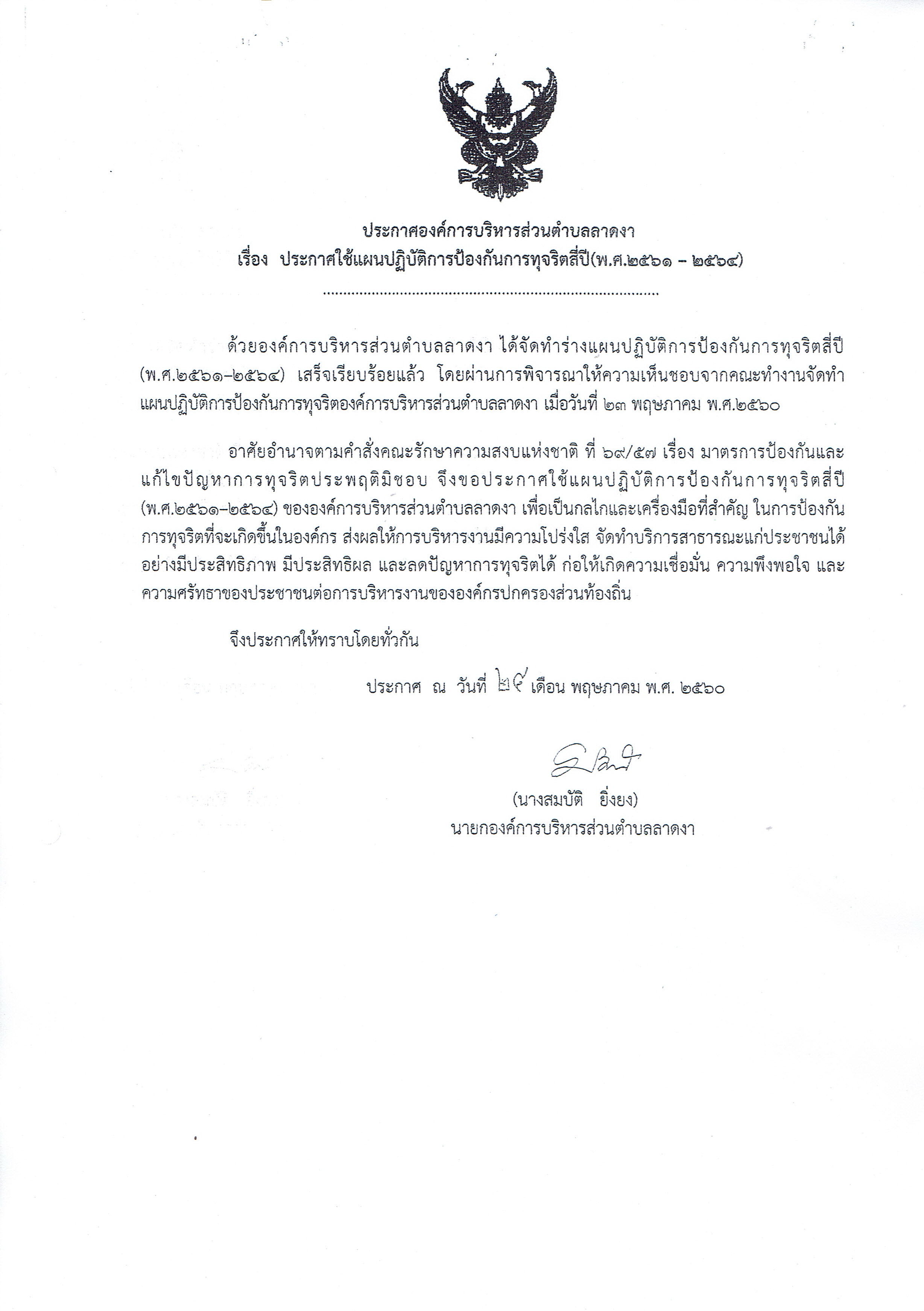 ประกาศใช้แผนปฏิบัติการป้องกันการทุจริตสี่ปี (พ.ศ.2561-2564)