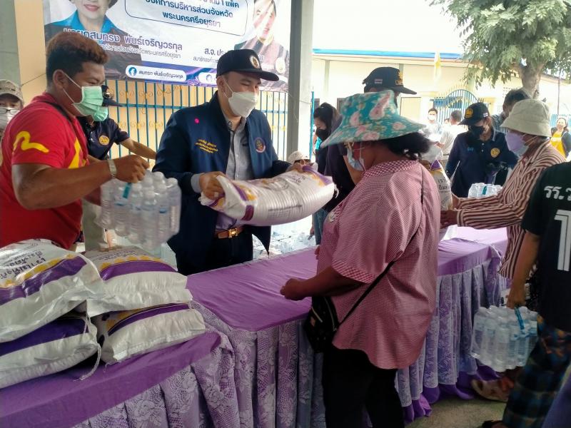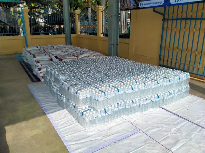 โดยมีข้าวสาร15กิโลกรัม และน้ำดื่ม 1แพ็ค