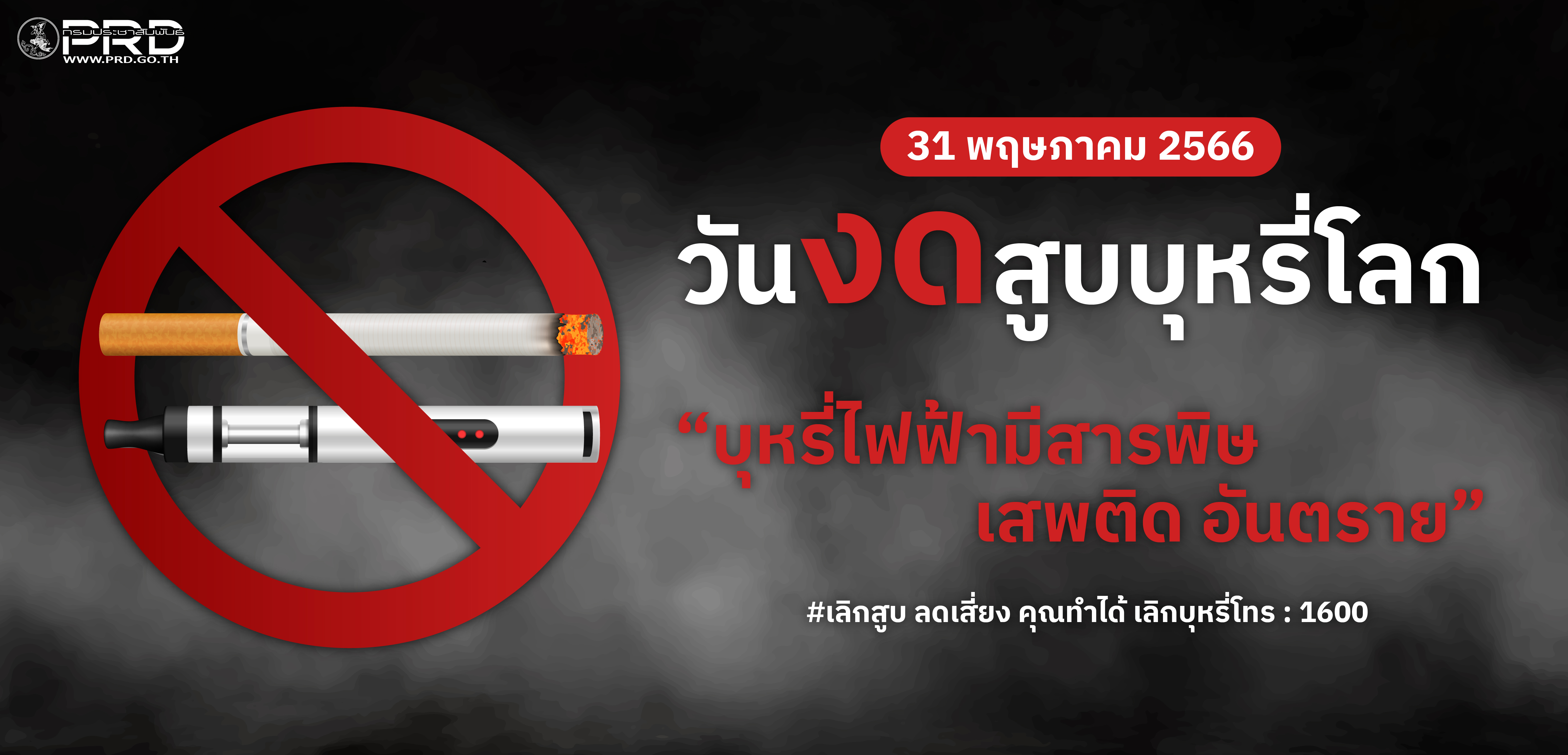 ชื่อเรื่อง : 31 พฤษภาคม วันงดสูบบุหรี่โลก 2566 World No Tobacco Day คำขวัญวันงดสูบบุหรี่โลก ปี 66 คือ "บุหรี่ไฟฟ้ามีสารพิษ เสพติต อันตราย"